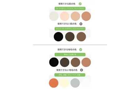 「使用できない肌の色」は、以下のスキンチャートで確認できます。